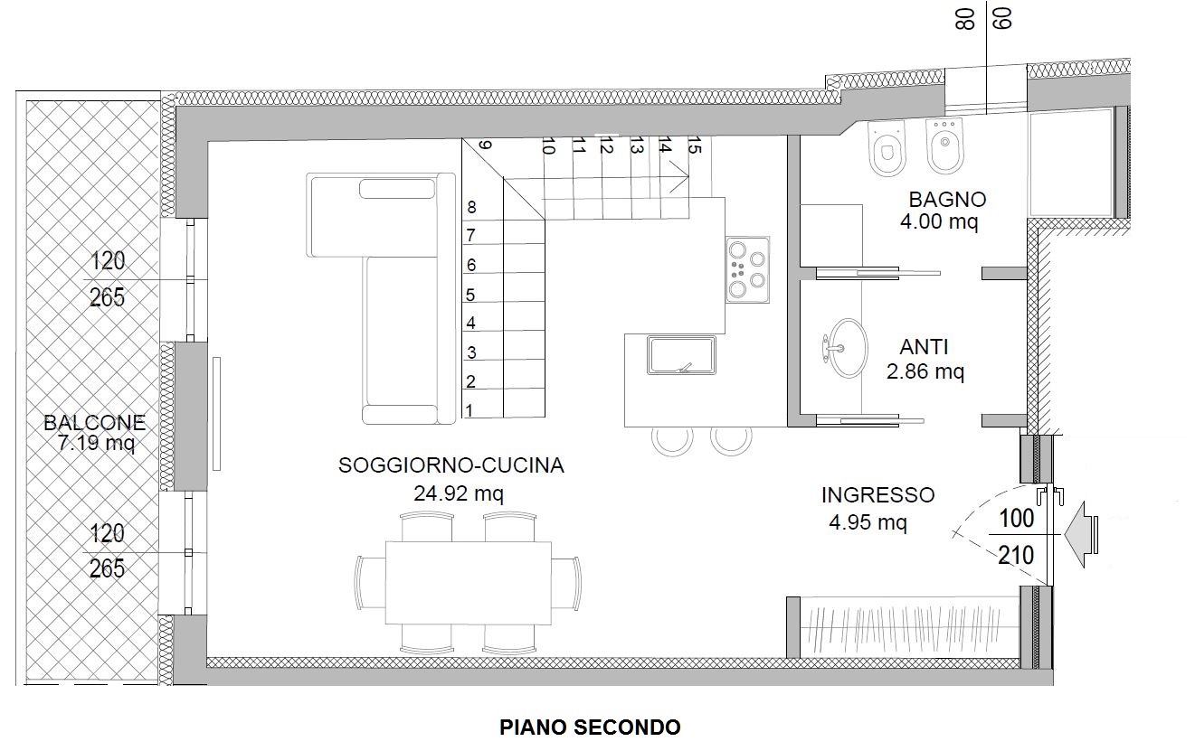 L’appartamento si sviluppa tra secondo e terzo piano, entrambi serviti da ascensore, e offre una distribuzione moderna ed elegante, perfetta per chi desidera un bilocale dal carattere unico.